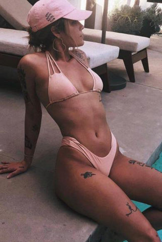The first thing you have to decide is what style does it fit you.If you don't know which style suits you, you can buy some different styles of bikini to try .It can be trendy or retro.Of course, preferably one that highlights your figure.Like the triangle bikinis that Halsey chose,they make her legs look longer.
