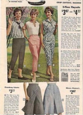 Bicycle pants were equally popular in the 1950s.The pants are tapered, tapered from top to bottom and narrow at the foot.It was originally designed to make cycling easier and to avoid the fabric curling into the wheels like a skirt.