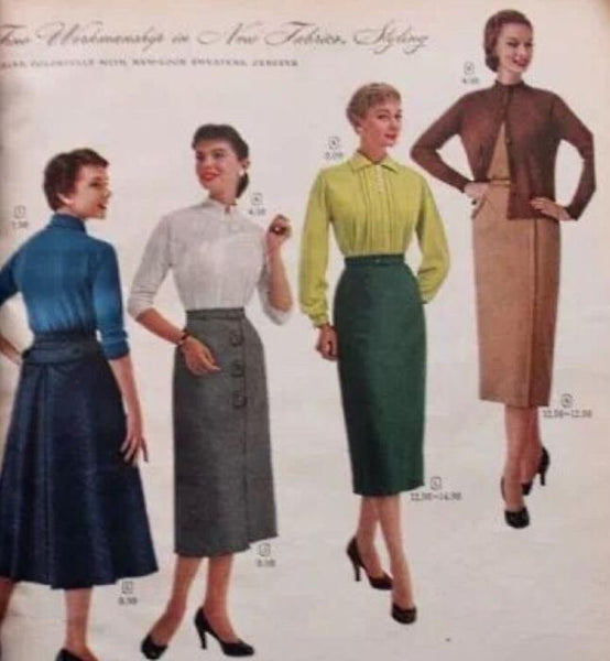In the 1950s, thanks to the advent of synthetic fabrics and new clothing styles, women bought clothes in record Numbers.As people emerged from the war, women returned to their families, and clothing companies began to copy high fashion and made affordable clothes.