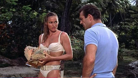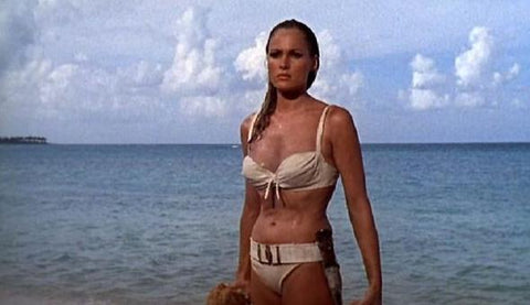 The first James Bond film, Dr. No is based on Ian Fleming's 1958 novel of the same name.Ursula Andress's hani Ryder is a 007 classic when she emerges from the water in a sexy bikini.Halle Berry also paid tribute to the iconic moment in James Bond.
