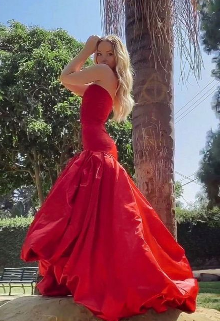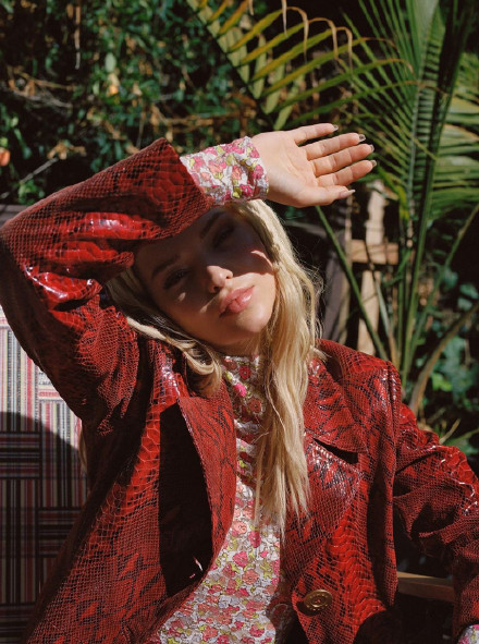 Dove Cameron wearing red jacket at Vanity Fair & Lancôme Toast Women In Hollywood In Los Angeles.