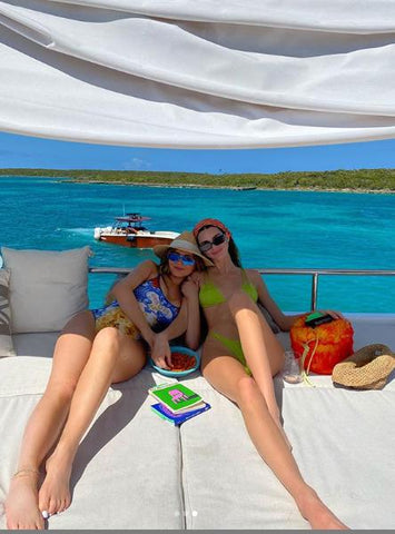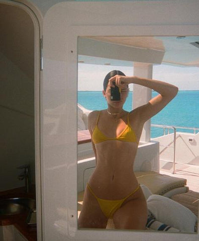 How can a bikini be unique?You can use some accessories to match your bikini,just like Kendall Jenner.A straw hat, sunglasses, and cover up are essential to a trip to the beach.If possible, you can also choose necklace,ring and scarves, etc.