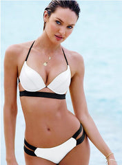 Embellish black and white bikini with necklace create a much stronger sense of depth.