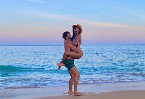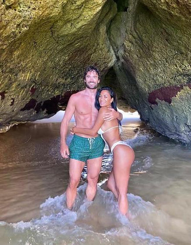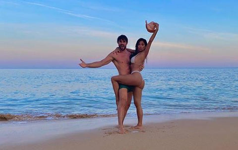 Nicole donning a tiny white bikini and Thom rocking a pair of green shorts.In the photos, they look fresh and happy, not tired from the journey.