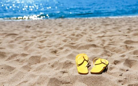Sneakers are not appropriate for the beach,so we should prepare a pair of slippers.