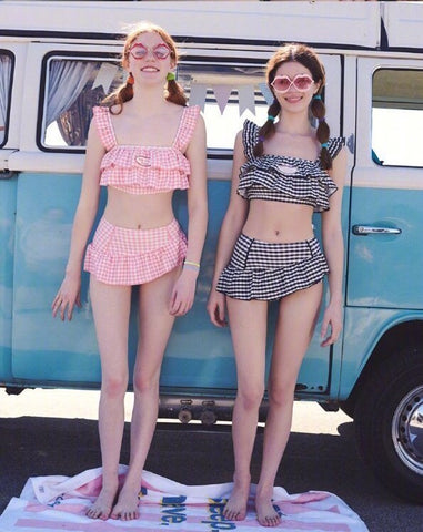 This is a timeless style.The white and pink grid bikini is suitable for all lovely girls.Love at first sight.There are not many intricate and gorgeous patterns,giving people a fresh and natural feeling.The straps on your shoulders and waist can be in any shape you want.
