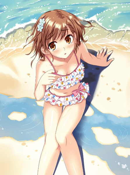 Misaka Mikoto has chestnut hair and is often seen wearing a small hair clip.She is ranked third out of only seven superpowers in Academy City, And She is nicknamed Railgun because of her ability to control electricity.To most people, she is considered a 'proper lady', but in reality, she's short-tempered, prideful, and has an improper attitude with some slight tomboyish tendencies and insecurities.Because of poor breasts, she wore childish underwear instead of a bra.Although the bottom of her heart does not like it, but Misaka Mikoto usually will choose a more conservative bikini.