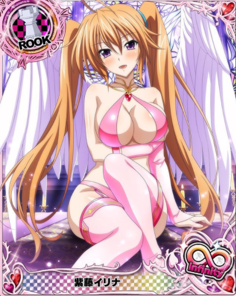 Irina is a very happy, upbeat person, as well as a devout Christian in the High school D×D.High School DxD is set in a fantasy world filled with diverse characters: angels, demons, gods, and even dragons! And she is a hero,calling herself an angel.She had big purple eyes, chestnut hair and often a ponytail.