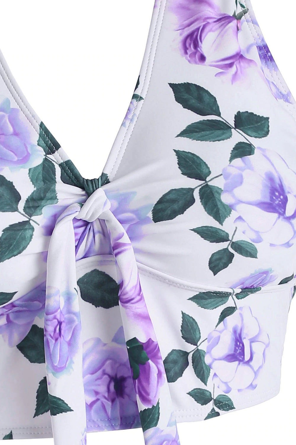 Floral Striped Ruched Crisscross Tankini Swimwear