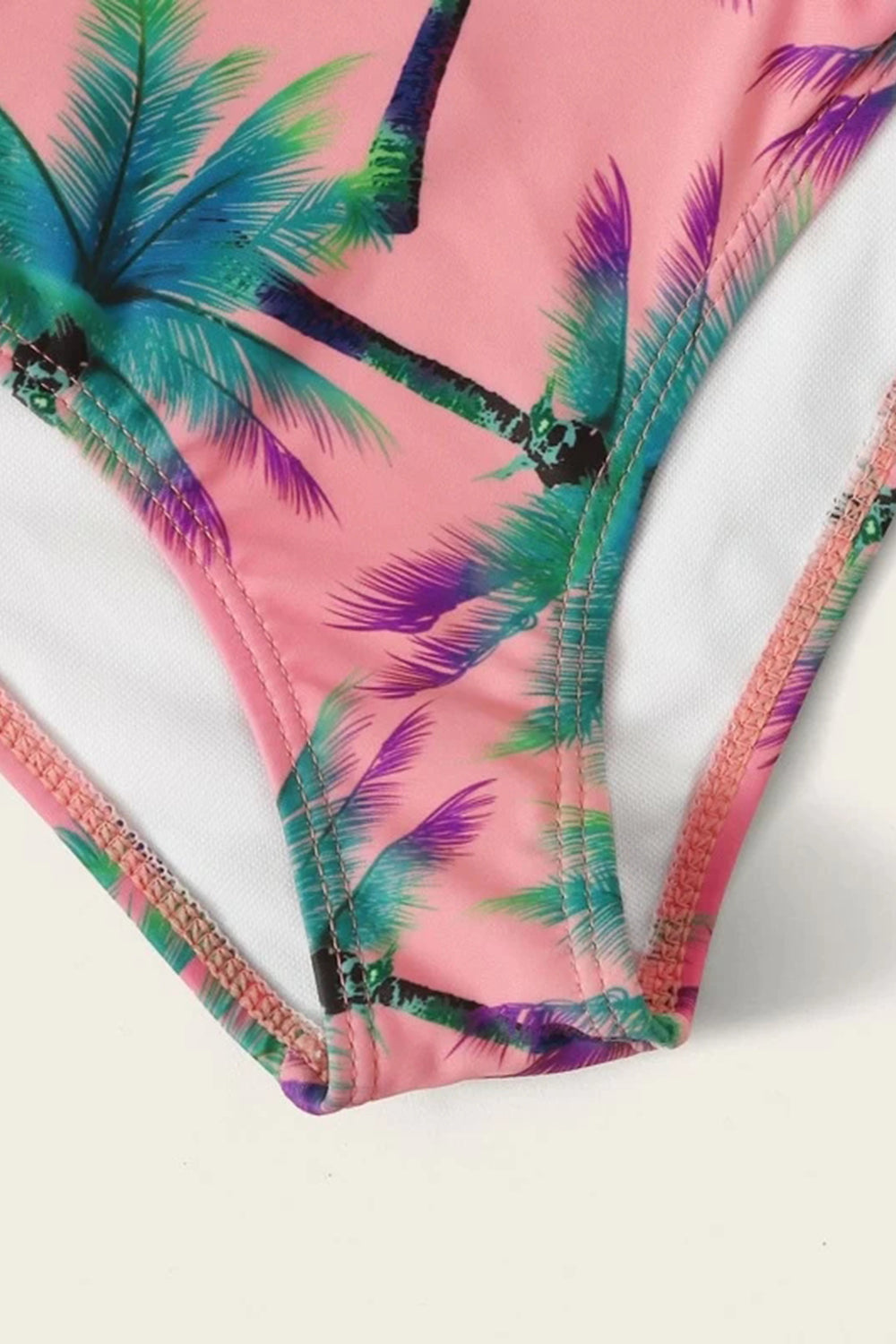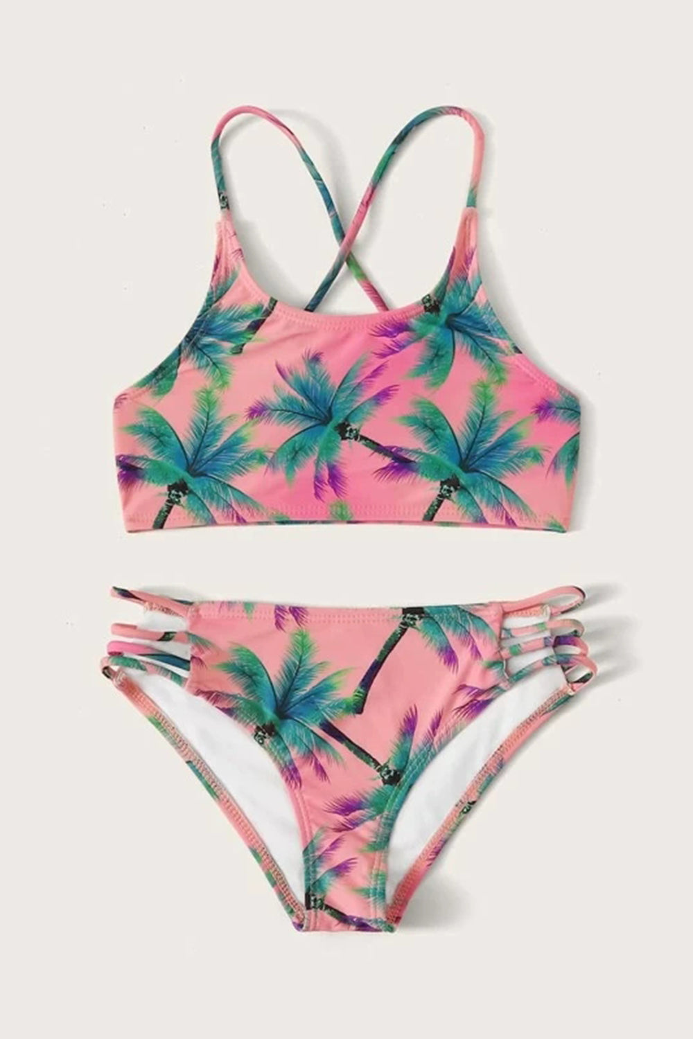 If you haven't tried this floral-print bikini before, then this lovely girls palm tree print bikini from Iyasson should be a must.Both its color palette and pop elements cater to the trends of 2020.Pink and coconut palms collide to make the bikini look even more vibrant.It is very suitable for young girls.