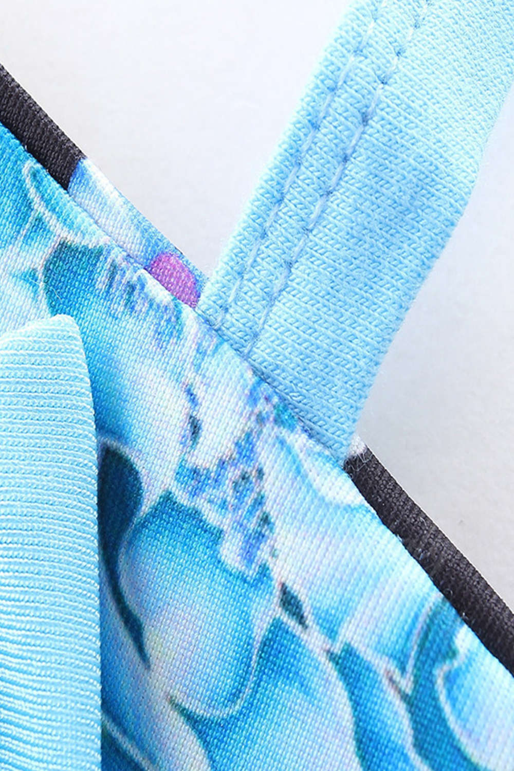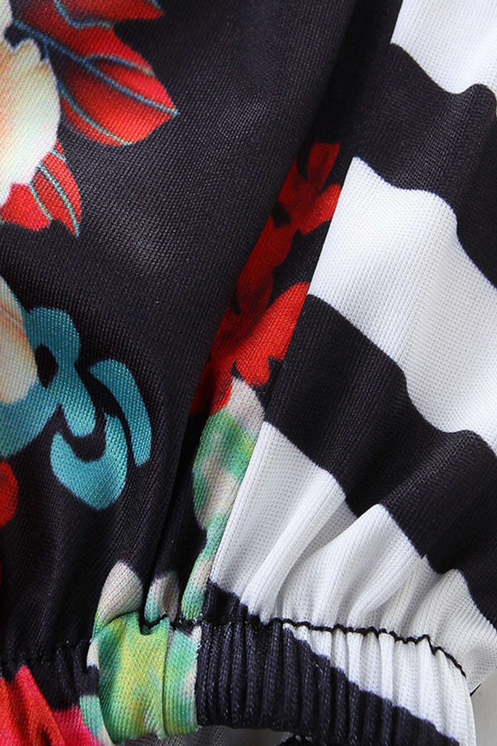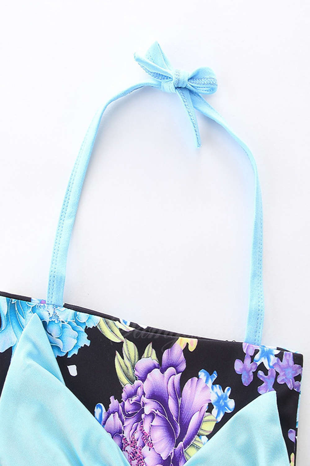Iyasson Floral & Stripe Splicing Printing Halter Baby Girl Swimsuit