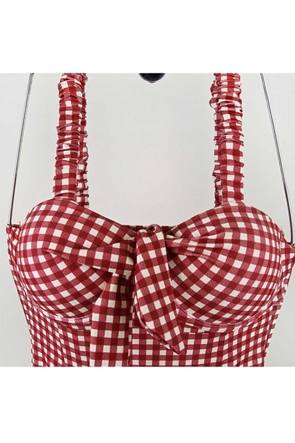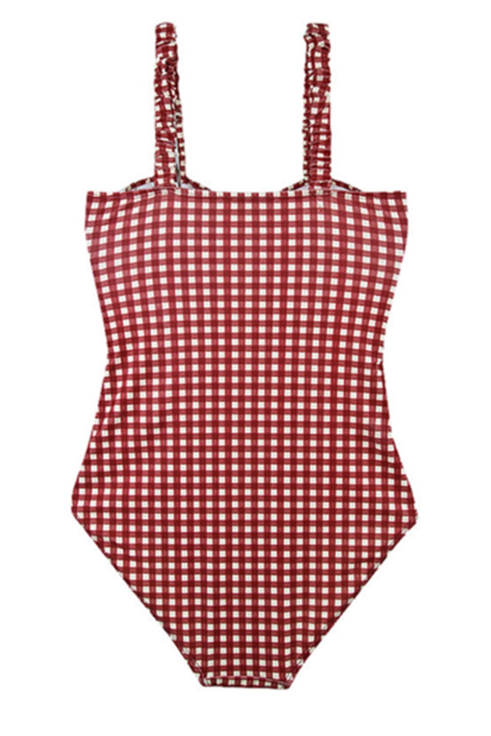 Wear a retro vintage one piece swimsuit and feel comfortable in it.Classical red and white Plaid design.It is perfect for swimming, surfing, or bathing in hot springs.And you are gonna love this swimwear in 2021 spring and summer.