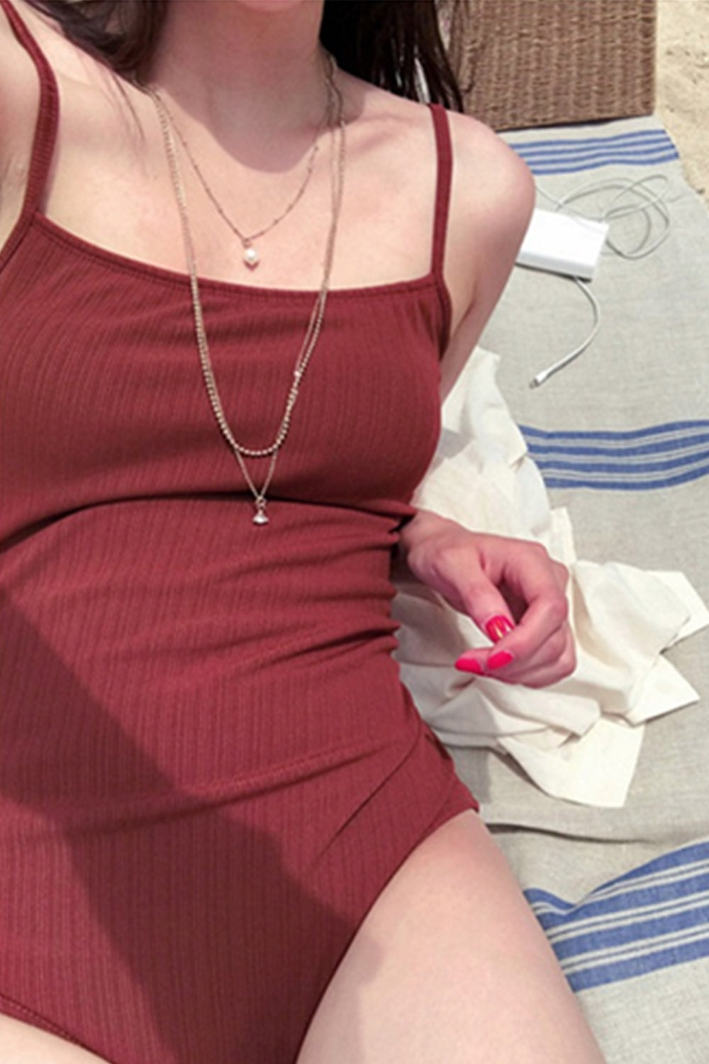 Iyasson Red Solid Color Women One Piece Backless Swimsuit