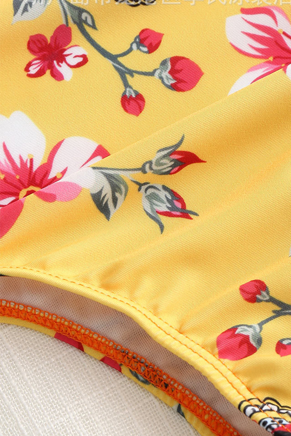 Iyasson Sexy Yellow Floral Printing Swimwear