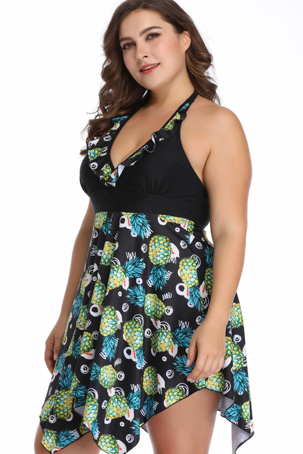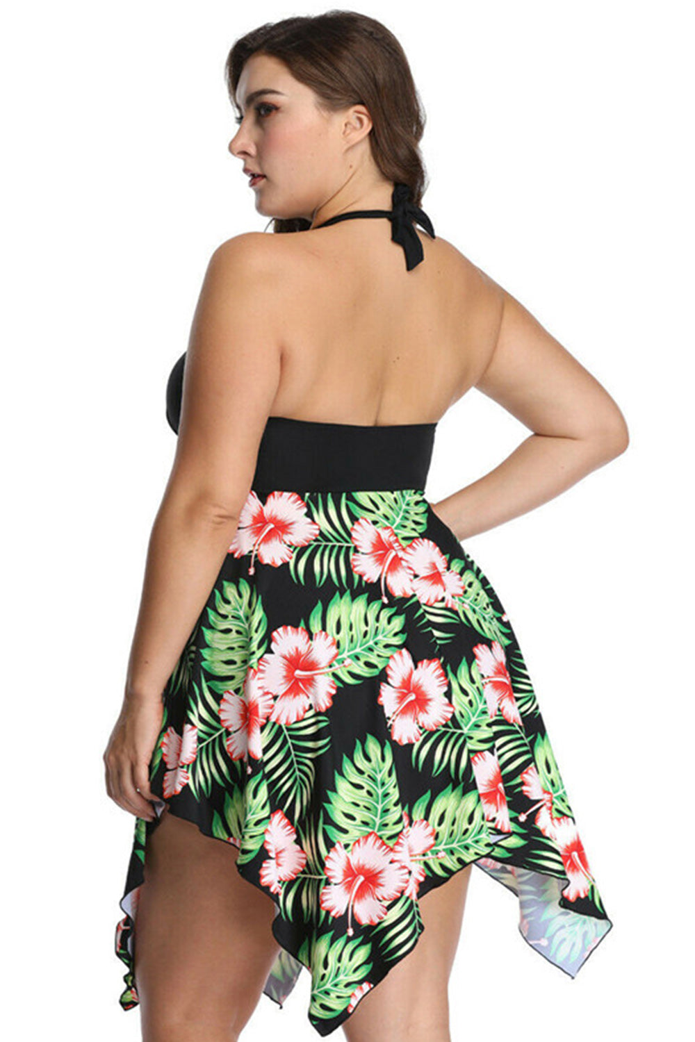 Iyasson Women‘s Oversize Floral Ruffle Trim Swim Dress