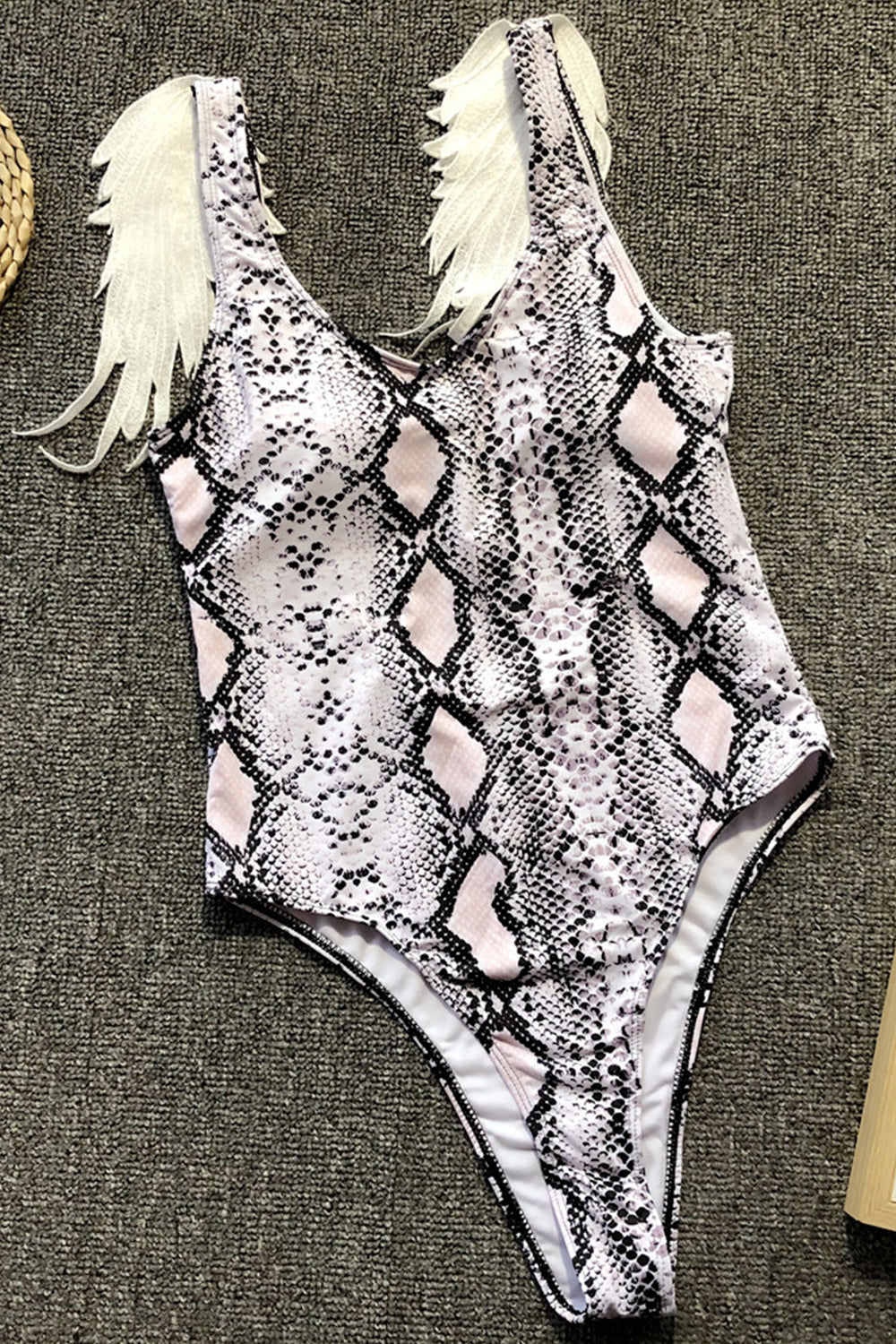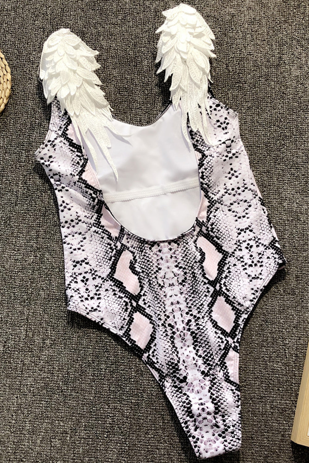 -Printed/Solid Color Angel Wings Deep V-Neck Swimsuit.