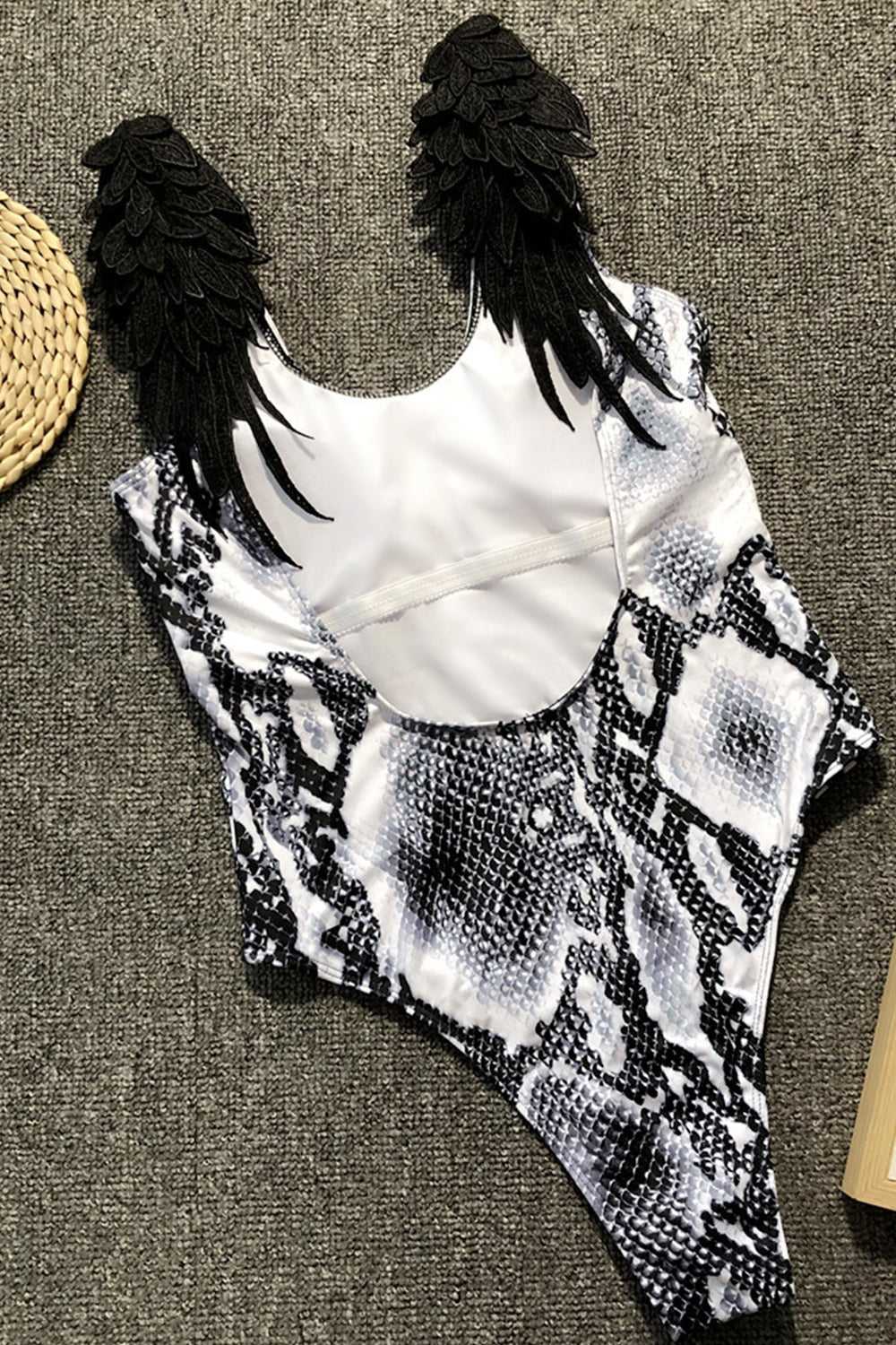 Iyasson Womens Sexy Printed Solid Color Angel Wings One-piece Swimsuit