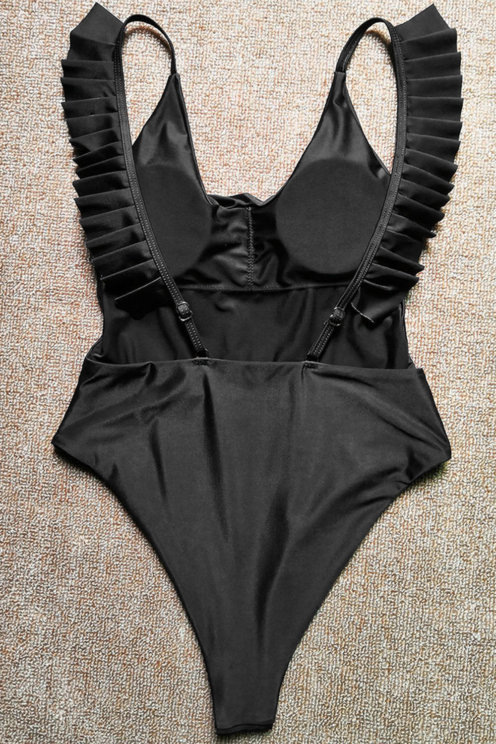 Iyasson Women's Sexy V-Neck Ruffle Trim Shoulder Strap Swimsuit