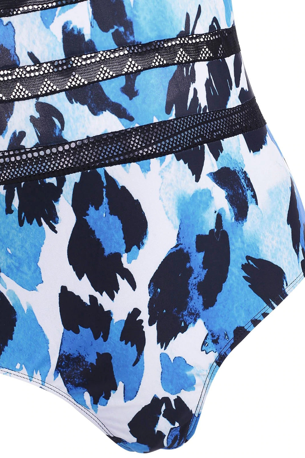 Leopard Backless Crochet Panel One-piece Halter Swimsuit