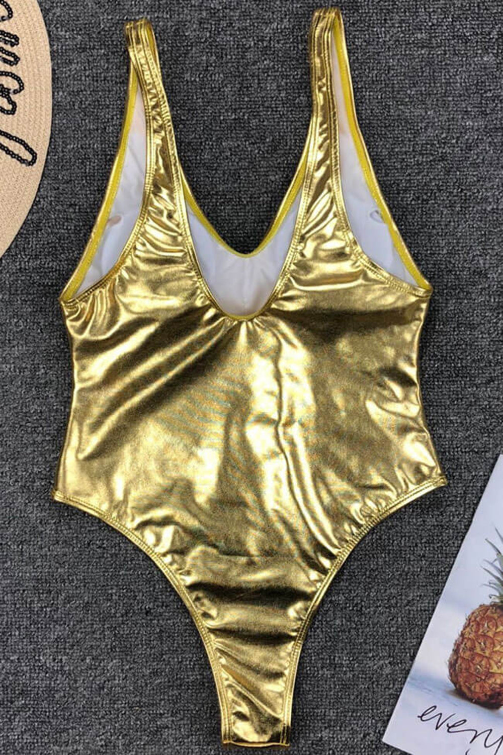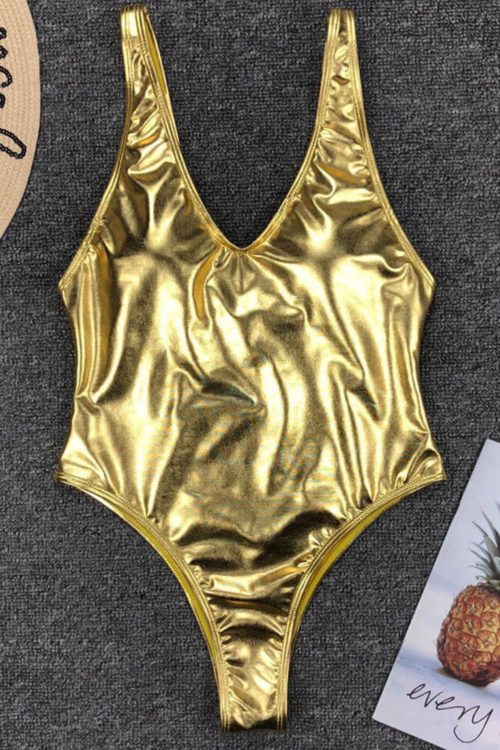 METALLIC HIGH LEG V NECK ONE PIECE SWIMSUIT