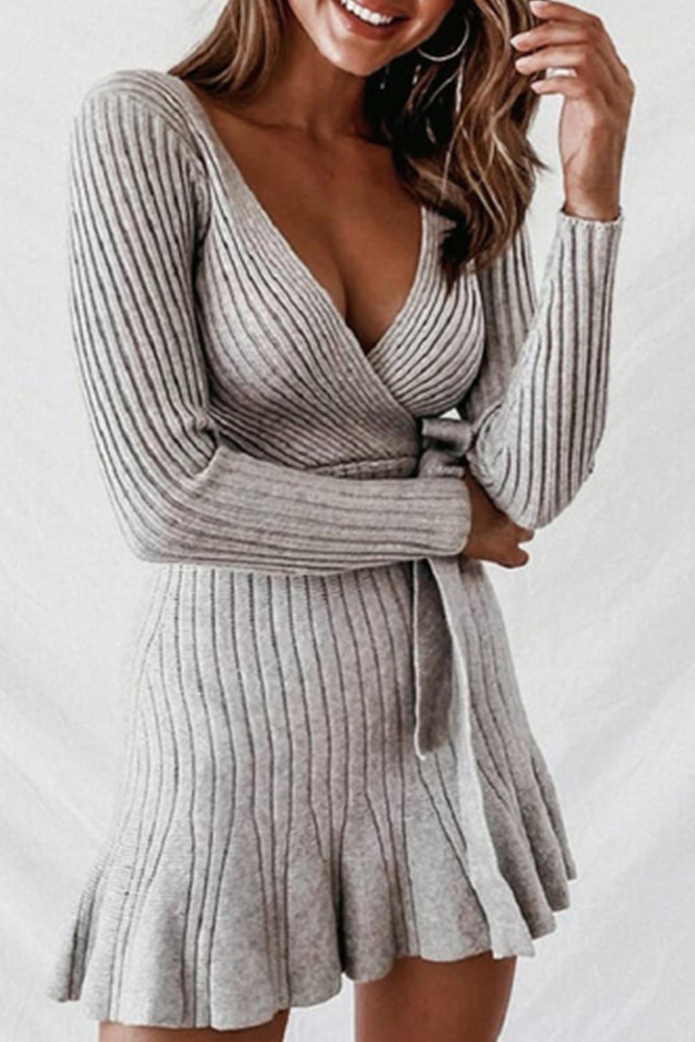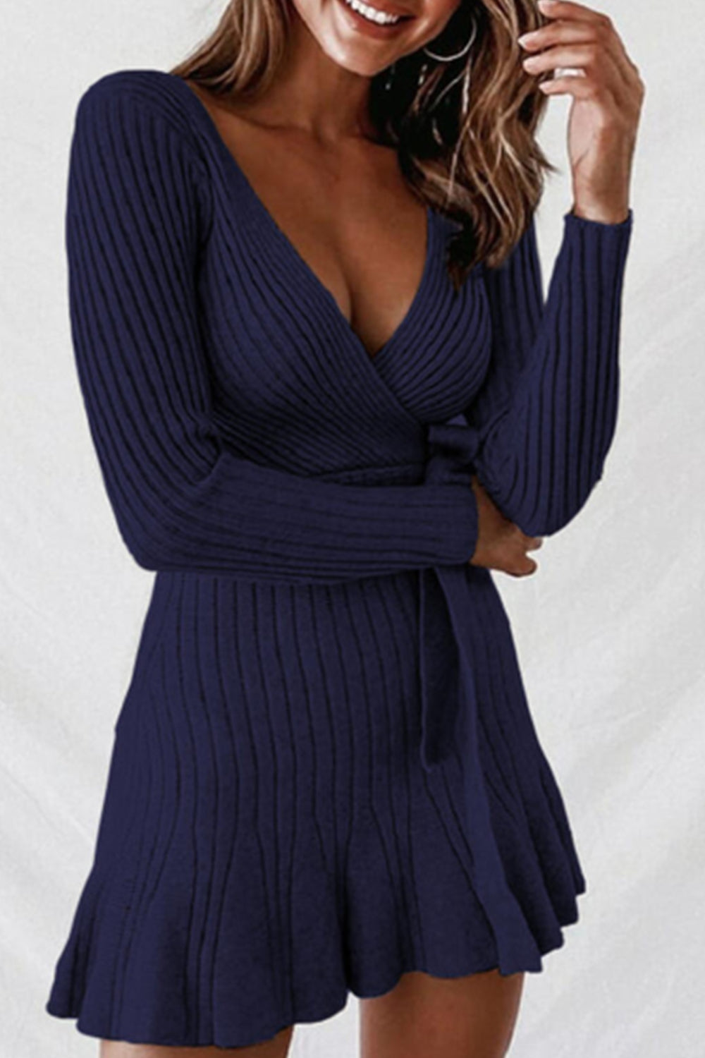 SEXY DEEP V-NECK LONG SLEEVE KNIT DRESS