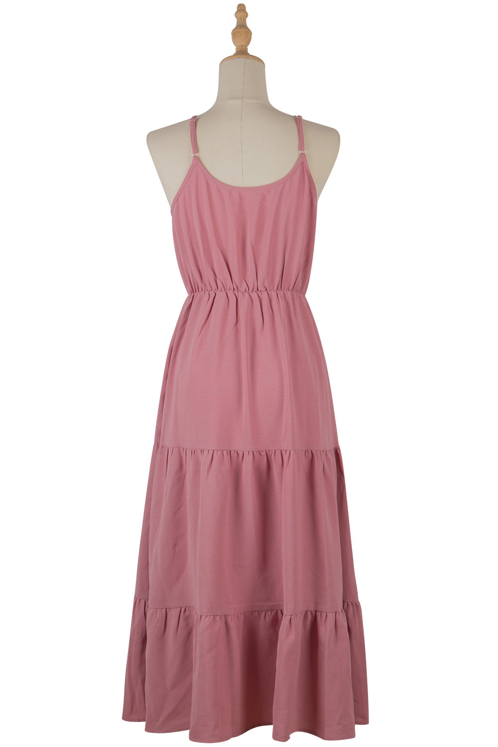 Pink long dress Made of quality, soft, lightweight polyester material, cool and comfortable to wear in hot summer!Womens beach dress features adjustable spaghetti strap,stretchy elastic high waist, solid color,Smocked Tiered dress, flared ruffle flowy skirts, Ankle length maxi dress,Casual boho style.