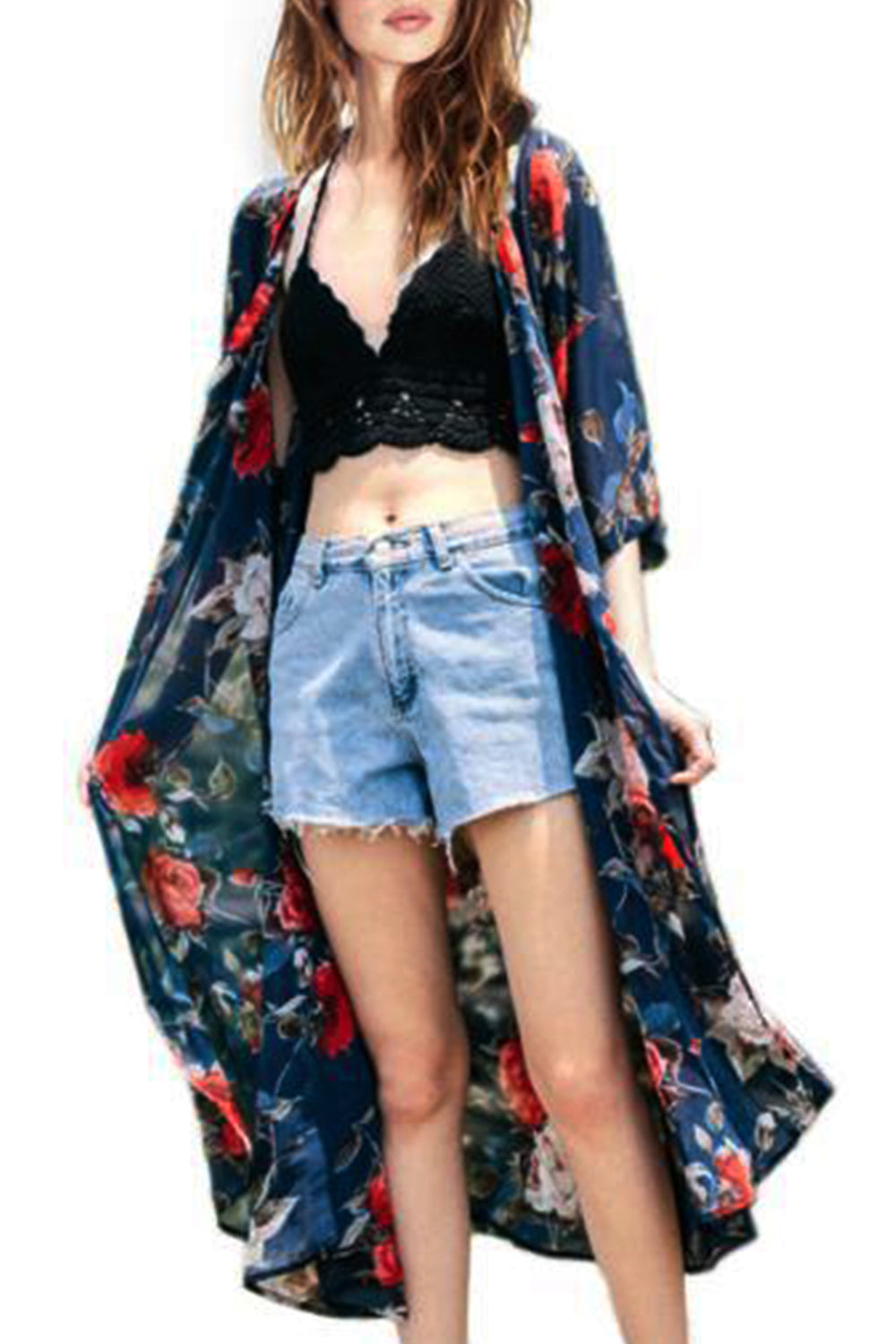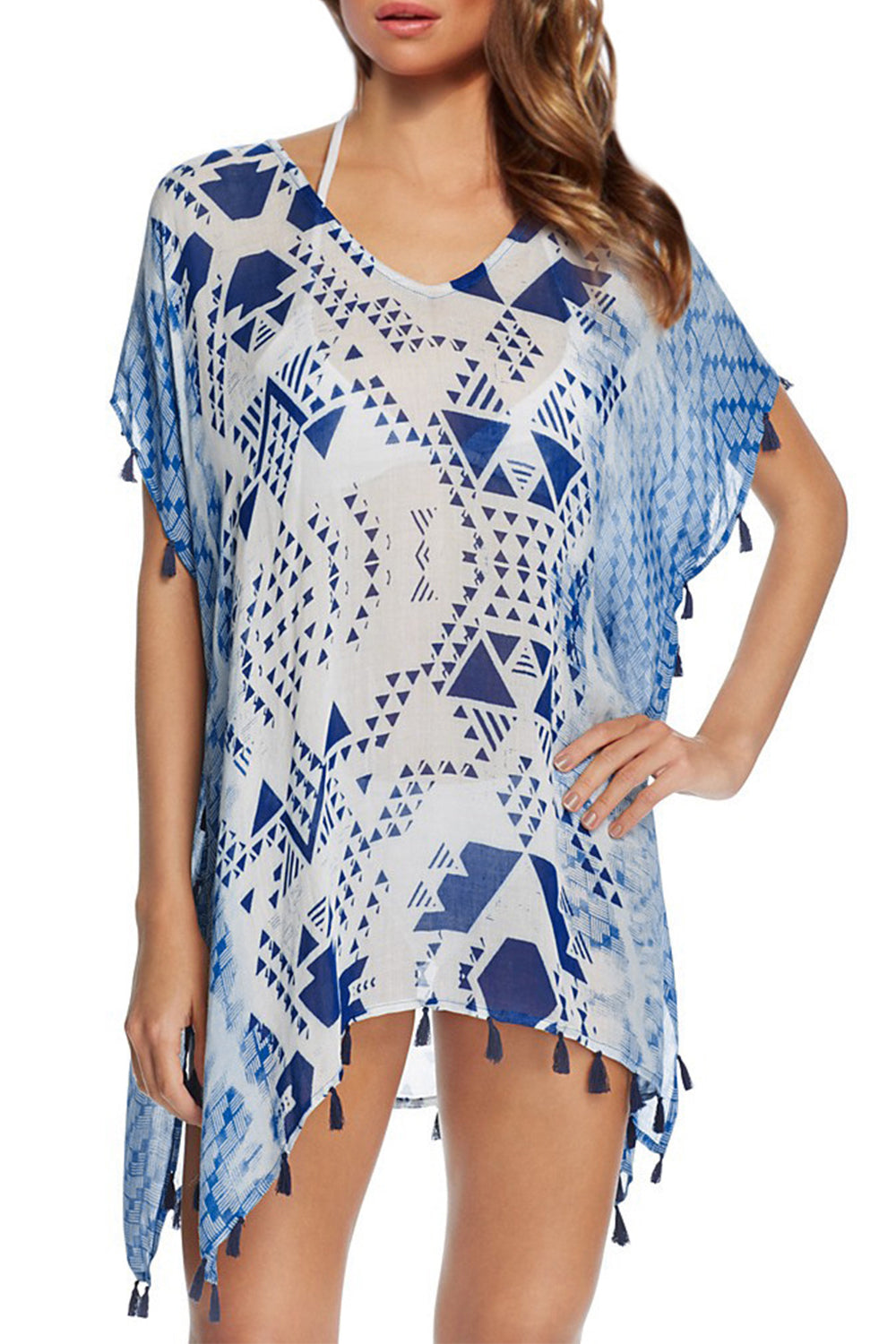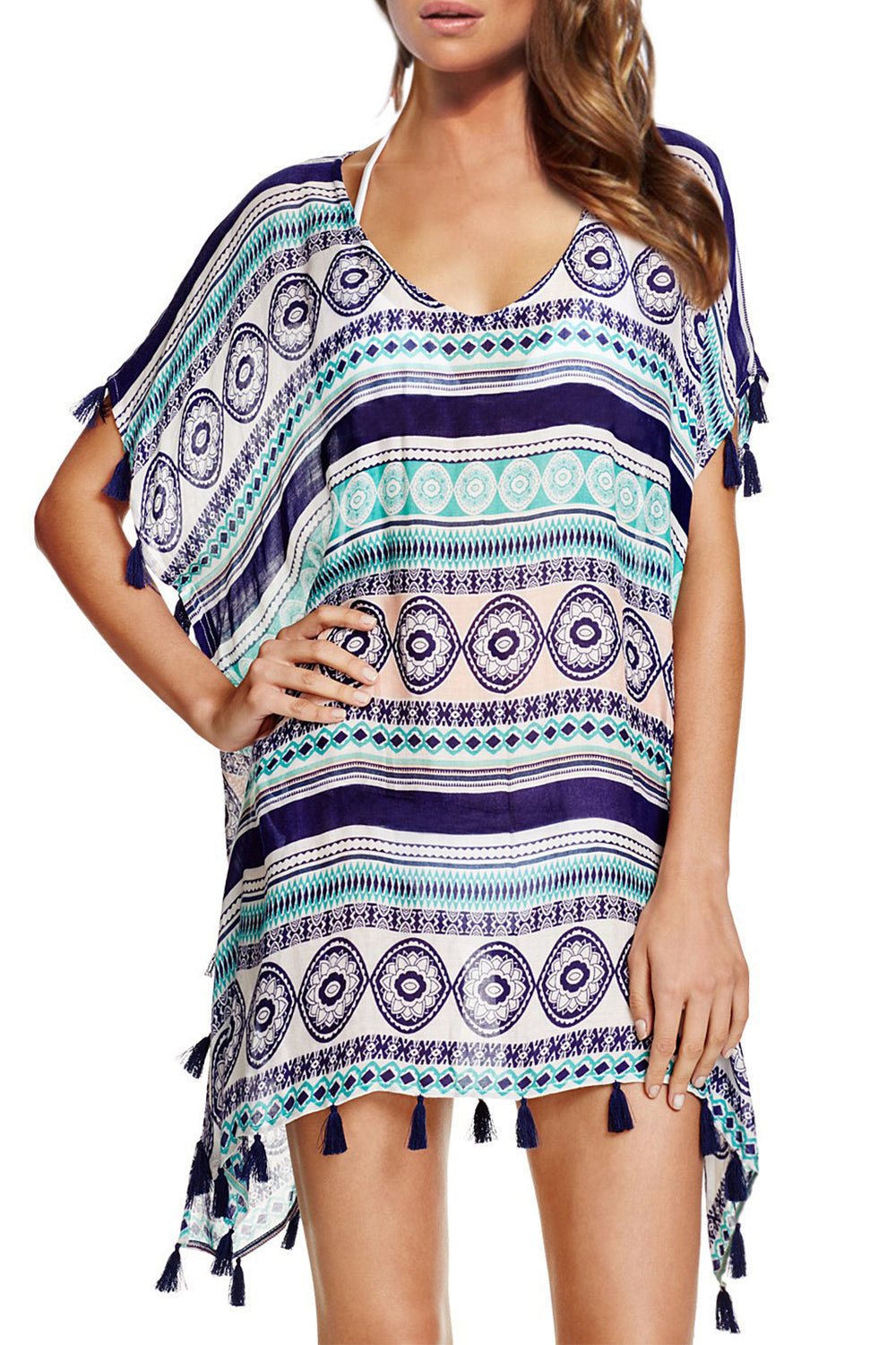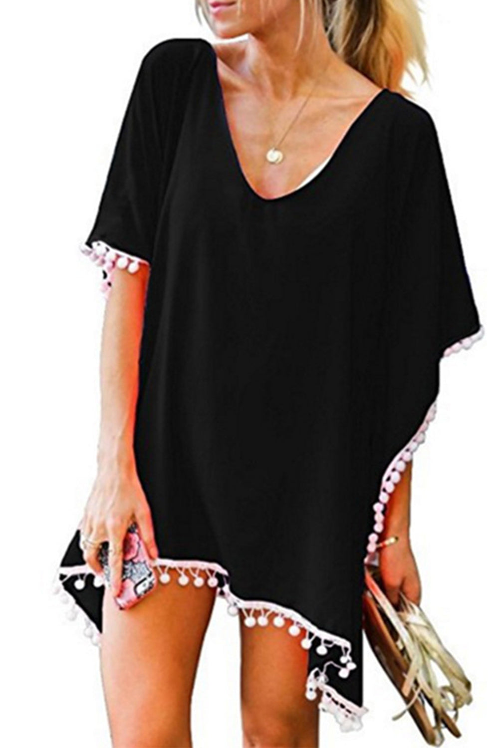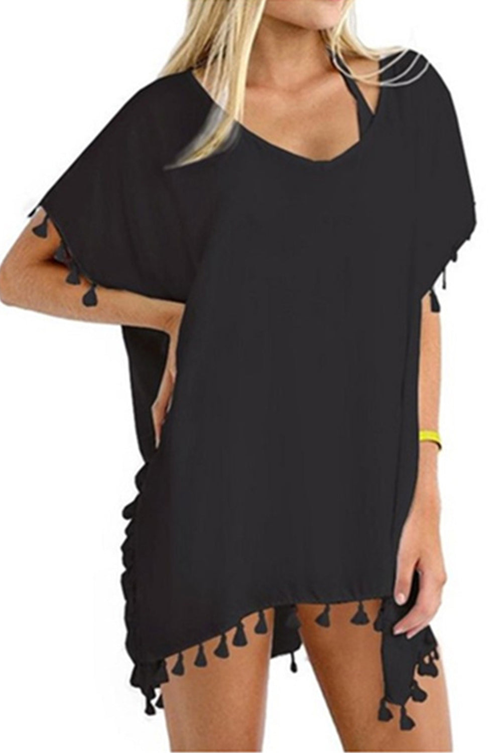 Women's Chiffon Bikini Cover Up Tassel Kaftan Lace Kimono Beach Dress