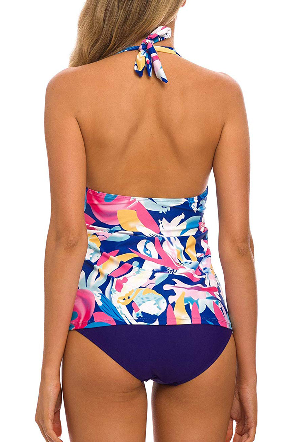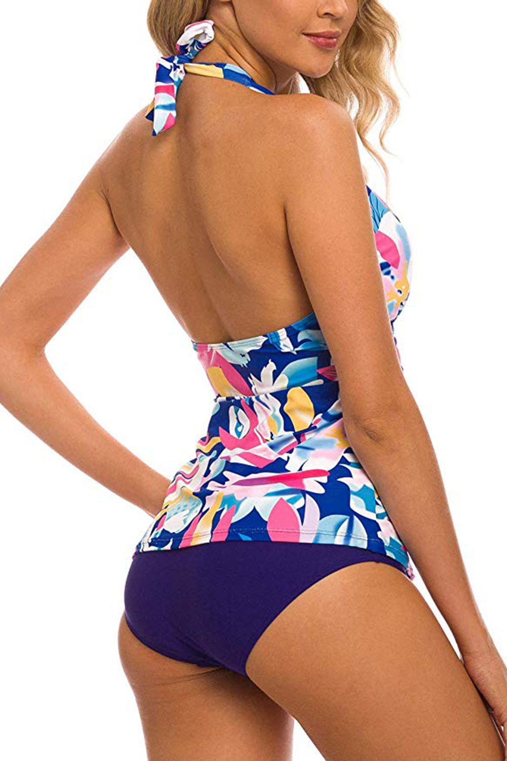 ♥ Style: This two pieces swimsuit comes with a halter floral print tankini top and a solid brief bottom.